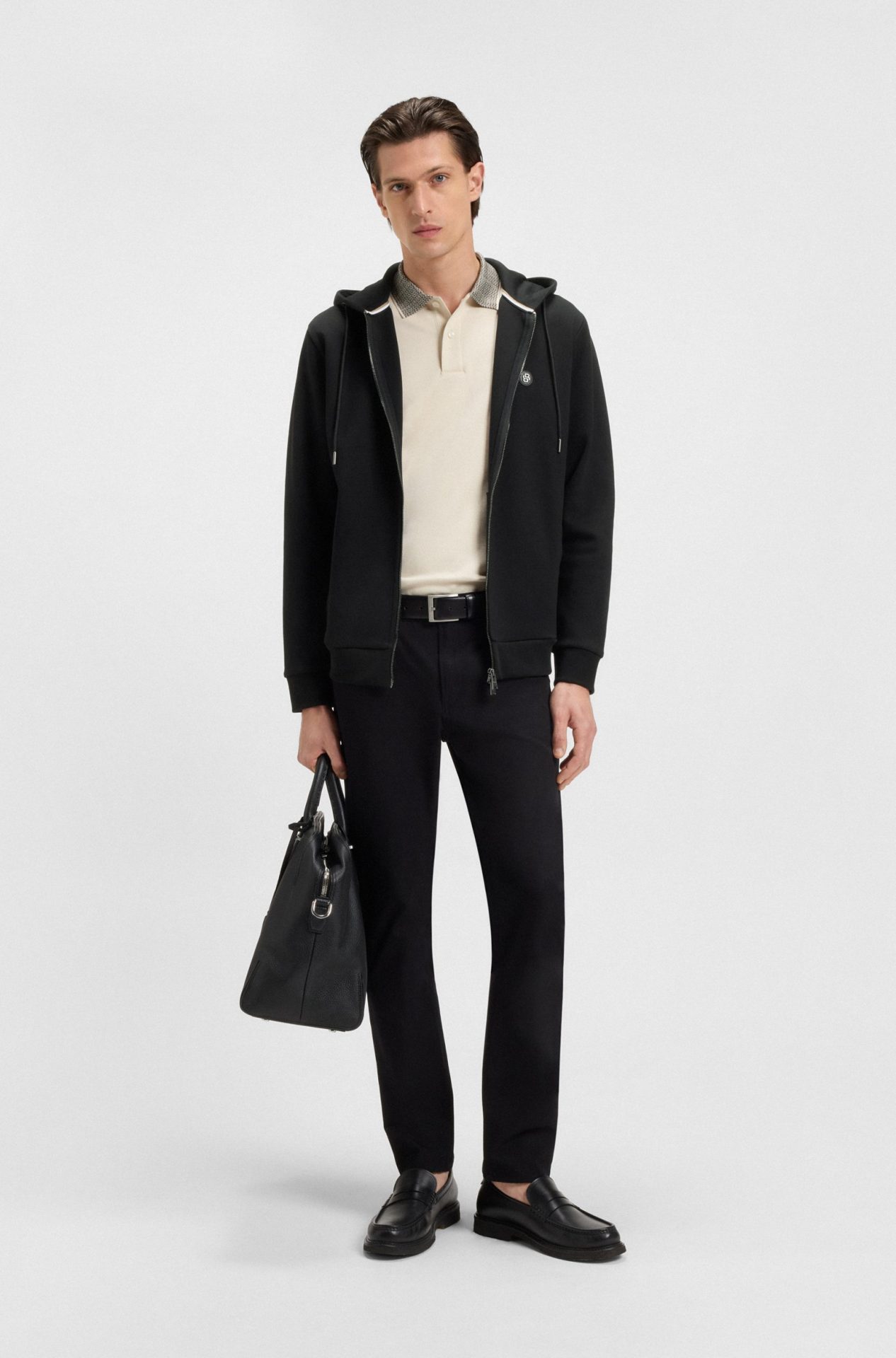 O design é marcado pelo aplique do Monograma “Double B” no peito, um detalhe exclusivo que adiciona uma assinatura discreta e elegante da marca. O moletom possui fecho em zíper, capuz com cordões ajustáveis, mangas longas e punhos e barra canelados para um caimento Regular Fit e ajuste perfeito ao corpo.