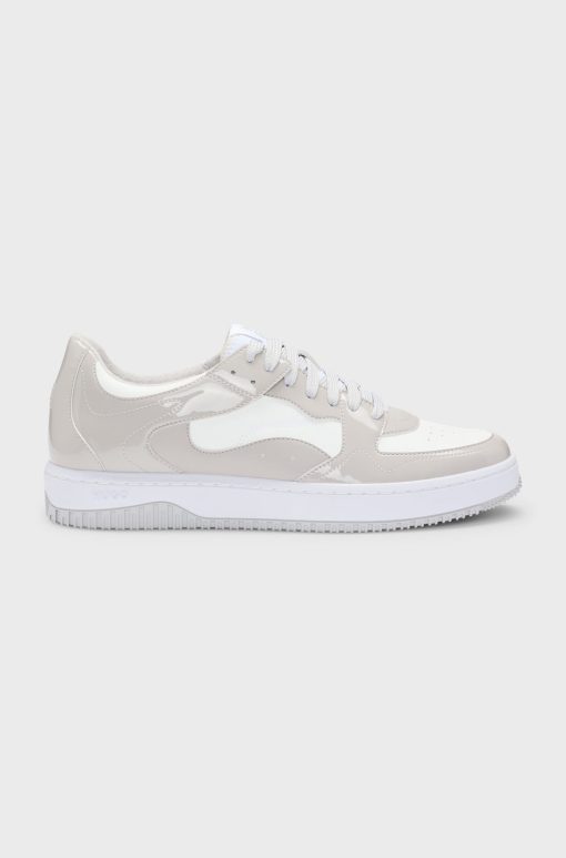 Refinado e contemporâneo: o tênis Hugo Boss Kilian Tenn (ref. 50535857) apresenta cabedal em material sintético com efeito gloss e detalhes de costura contrastante, sobre solado de borracha que confere leveza e conforto. A silhueta de cano baixo exala elegância urbana discreta, ideal para composições minimalistas em tons neutros ou toques sutis de cores neutras.