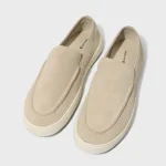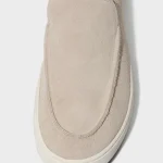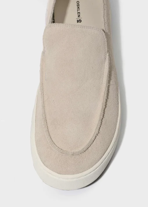 Tênis Soho em camurça bovina com detalhe de costura ao topo. Modelo slip on. Forro e palmilha em couro bovino. Solado de borracha costurado ao cabedal com design exclusivo Osklen, produzido com no mínimo 10% de material reciclado. Produto Re-Design Waste.