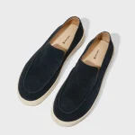 Tênis Soho em camurça bovina com detalhe de costura ao topo. Modelo slip on. Forro e palmilha em couro bovino. Solado de borracha costurado ao cabedal com design exclusivo Osklen, produzido com no mínimo 10% de material reciclado. Produto Re-Design Waste.