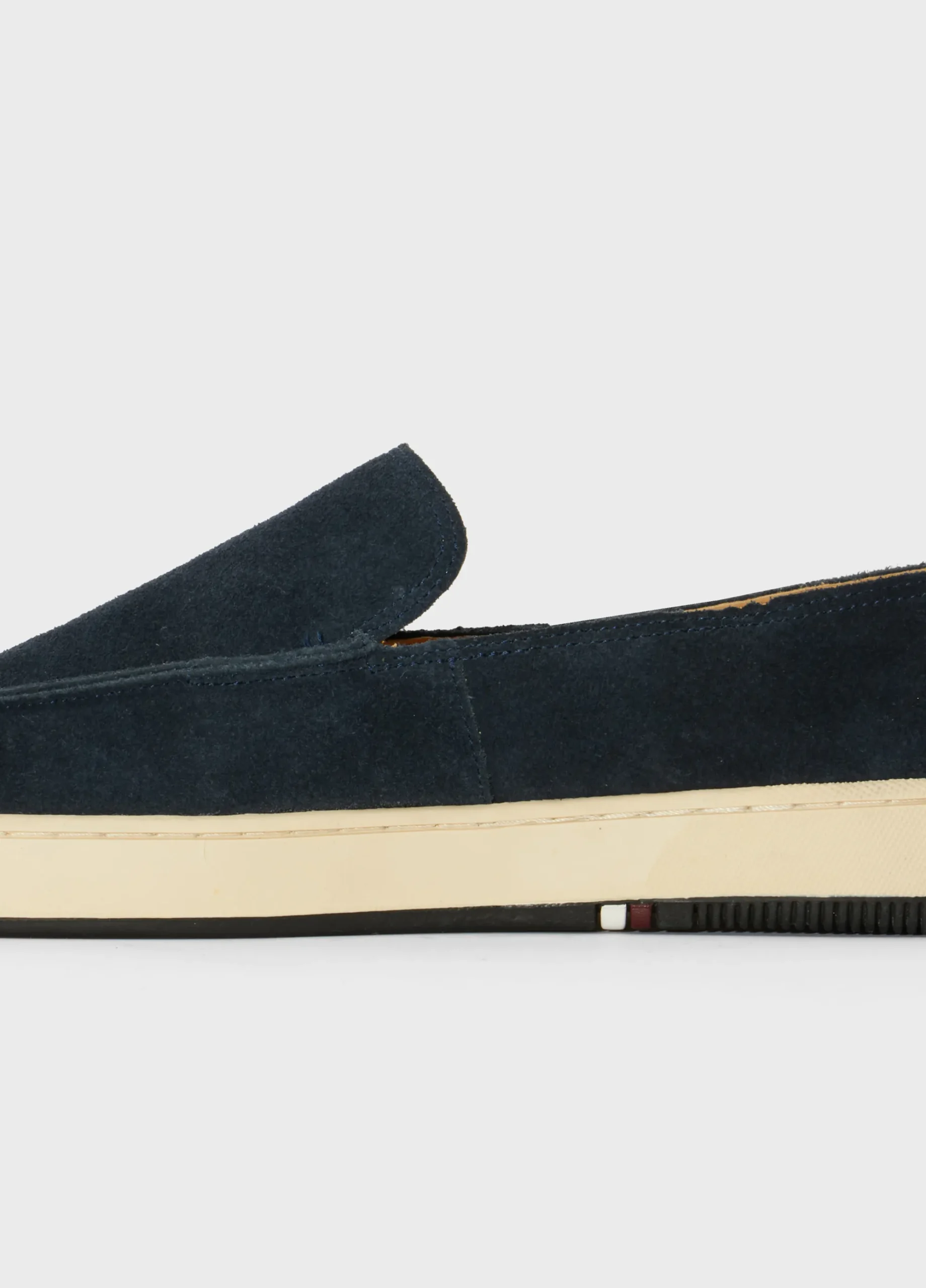 Tênis Soho em camurça bovina com detalhe de costura ao topo. Modelo slip on. Forro e palmilha em couro bovino. Solado de borracha costurado ao cabedal com design exclusivo Osklen, produzido com no mínimo 10% de material reciclado. Produto Re-Design Waste.