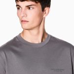 O design minimalista é elevado pelo detalhe do logo. O logo Armani Exchange “Milano / New York” é aplicado no peito em um elegante tom sobre tom (tone-on-tone). Este acabamento sutil confere a assinatura da marca de forma discreta e sofisticada, ideal para quem valoriza a marca sem ser excessivamente chamativo.