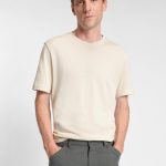 O grande diferencial desta peça está na sua estrutura de espinha de peixe (Herringbone). Esta trama especial cria uma textura visual discreta e elegante, que confere profundidade ao tecido, diferenciando-a das T-shirts de malha lisa tradicionais.