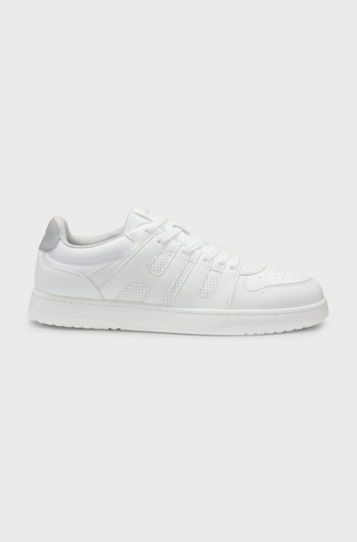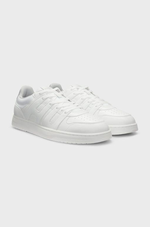 Tênis HUGO confeccionado em material sintético que imita o couro, com logo em relevo tonal e detalhe contrastante no calcanhar. Fechamento por cadarço e interior totalmente forrado.